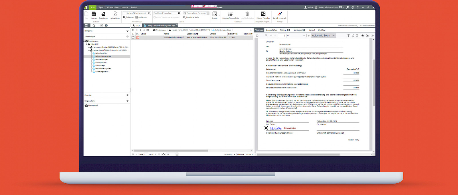 Mit dms.net ivoris® haben Sie alle Patientendokumente jederzeit griffbereit – sicher, revisionssicher und direkt in Ihrer Praxisverwaltung integriert. Dokumente werden digital abgelegt, Änderungen automatisch versioniert und per OCR-Technologie blitzschnell auffindbar. So sparen Sie Zeit, Platz und behalten den Überblick.