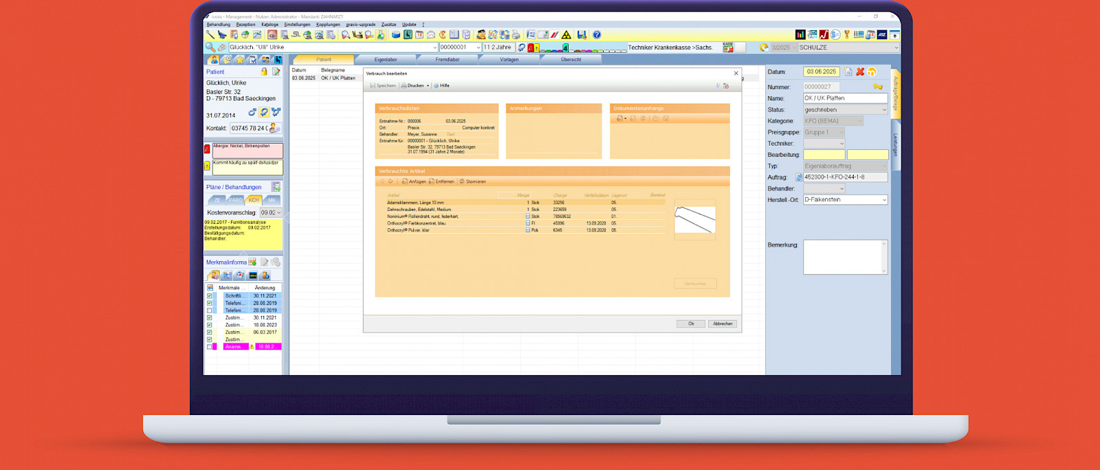 Jetzt noch einfacher bestellen – dank direkter Anbindung an den Dental-Onlinehändler Aera. Artikel aus Ihrer Merkliste lassen sich direkt aus mawi.net an Aera senden. Ebenso können Bestellungen aus Aera automatisch in die Materialverwaltung übernommen werden. Das spart Zeit, vermeidet doppelte Eingaben und sorgt für eine lückenlose Dokumentation.