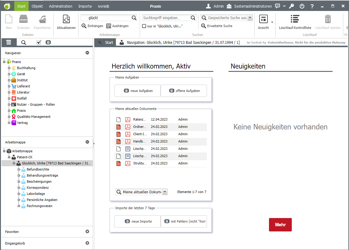 - Ab ivoris® Version 8.2.79.X ist der Versand von Dokumenten aus dms.net per KIM möglich. Der direkte Upload von Dokumenten ist aus dem ivoris®-Postbuch als Anlage zu KIM-Mails und in die elektronische Patientenakte (ePA) möglich. Die Hinweismeldung „Dieses Dokument existiert nur in dms.net. […]“ entfällt zukünftig. Weitere Hinweise erhalten Sie in den Release Notes.