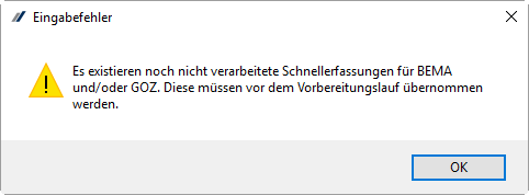 Danach wechseln Sie in den Reiter Abrechnung Kieferorthopädie/GOZ-Tabelle und führen dieselben Schritte durch bis zur Meldung, dass keine Schnellbefundung zur Übernahme mehr vorhanden ist.